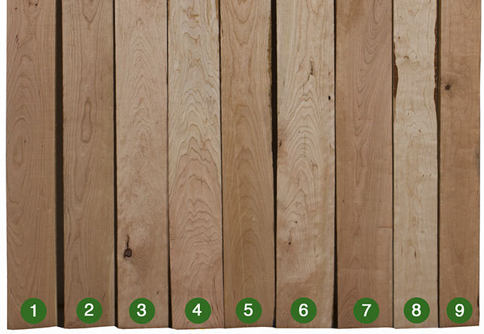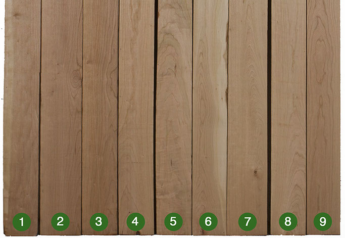 La madera presenta una veta recta y fina, con suave textura y puede tener pequeñas bolsas resiníferas naturales. El color del duramen del Cerezo varía y va de un color rojo intenso a café rojizo, y se oscurece al ser expuesto a la luz y al aire; en contraste, la albura es de color blanco cremoso.